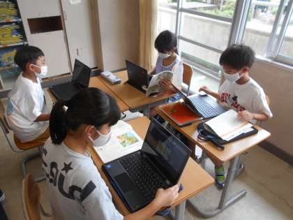 国語科で、山小屋に持って行きたいものについてクロムブックを用いて意見を出し合いました。