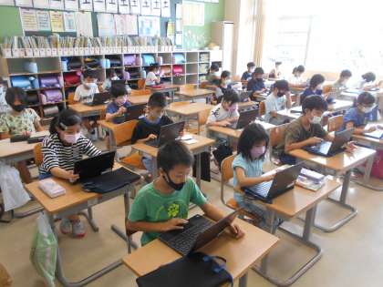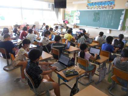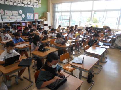 朝の学びタイムに、クロムブックを使ってデジタル問題集に取り組みました。