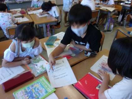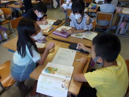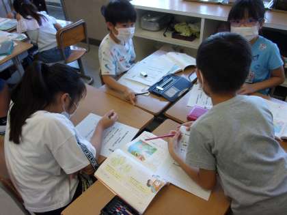 国語では「山小屋で三日間過ごすなら」の単元を学習しています。考えを広げたり、まとめたりしながたグループで話合いをしました。