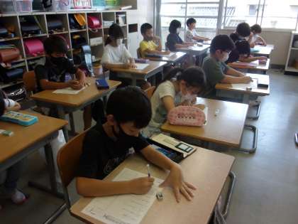 漢字の小テストをしました。練習して覚えた漢字を正しく書けたでしょうか。