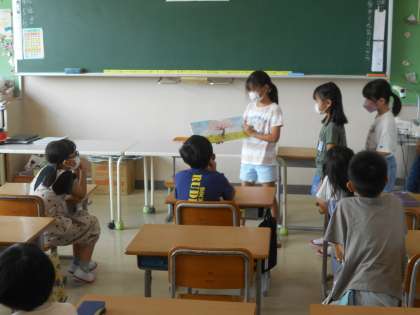 2組では、読書係が読み聞かせを行いました。係の子供たちはたくさん練習していました。