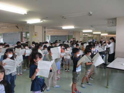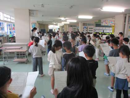 学習発表会で行う「くじらぐも」の劇中の歌、「いつまでもともだち」を練習しました。心を込めて、前回よりも上手に歌うことができました。
