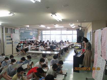 学習発表会に向けて、せりふの読み合わせや動きをつけて練習を始めています。また、劇に大きな関わりをもつ歌の練習も始まりました。今週中に自分の希望のパートを決め、来週からパートに分かれて練習をしていきます。