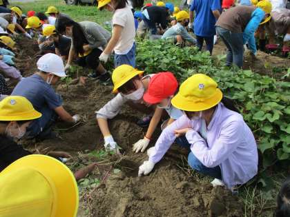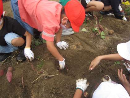 栽培ボランティアの方のご協力のもと、6年生と一緒にサツマイモほりを行いました。水やりをして一生懸命お世話をしたサツマイモを収穫することができて、子供たちはとても嬉しそうでした。