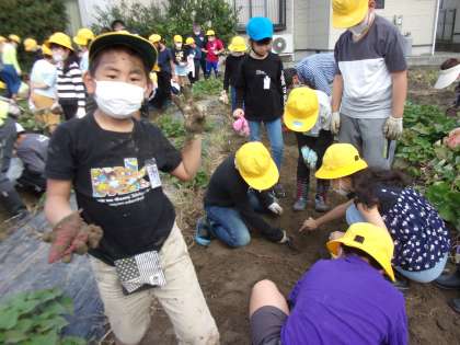 ボランティアの方に教わりながら、さつまいもを掘りました。大きなものから、小さなものまで、様々な大きさのさつまいもを収穫しました。お手伝いいただき、ありがとうございました。