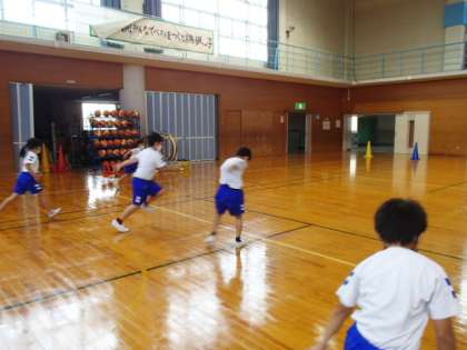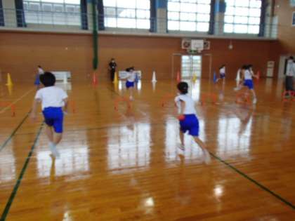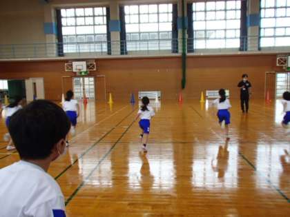 今日、体育科の学習でハードルリレーを行いました。腕をふる、地面を強く蹴る、足を振り上げるなど、速く走るための工夫を考えて走ることができました。また、ミニハードルを使って、リレーも行いました。団で声をかけ合いながらバトンを繋ぐことができました。