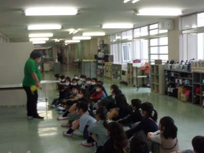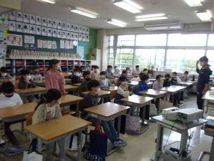 浸水を想定した避難訓練を行いました。すばやく並び、体育館へ避難しました。、訓練の後は、各クラスで並び方を復習したり、振り返りをしたりしました。放送をよく聞いてすばやく行動したいと振り返る子供たちでした。