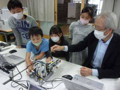 プログラミングクラブの子や外部の先生に教わりながら、ロボットやベルトコンベアーを動かしたり、スクラッチで遊んだりしました。ブロックの色を識別して、色別に分けるベルトコンベアーの動きに驚いていました。