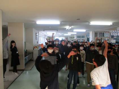 いよいよ出番です。学年フロアに整列し、全員で気持ちを1つにしました。