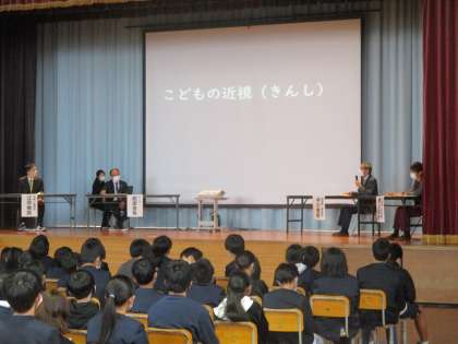 今日は学校保健委員会を行い、子供たちは、目に関することやメディアコントロールをすることの大切さを学校医の先生方から聞きました。また、スマートフォンやゲームの長時間利用で近視になりやすいことや進行すると視力が戻らないことを知ると驚きの声があがりました。今日の学びを明日からのメディアコントロール週間に生かしてほしいと思います。