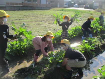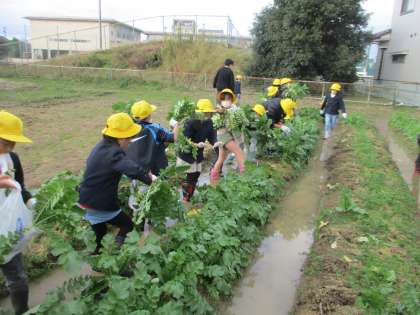 2学期に入り種をまき、成長を見守ってきた大根を収穫しました。大きく太く育った大根をうれしそうに抜いていました。ぜひ、ご家庭でも話題にしていただき、一緒に料理を楽しんでいただければ幸いです