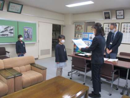 今日の受賞は、図画と習字で活躍した子供たちでした。校長先生から、好きなことや得意なことをこれからも伸ばしていけるよう励ましの言葉をいただきました。