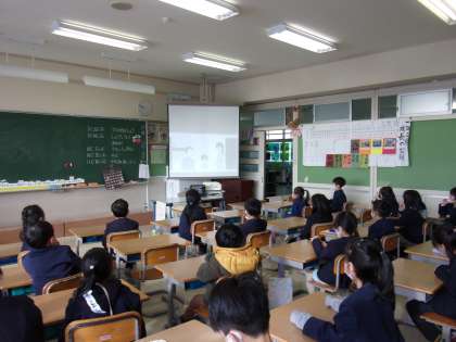 万引きをして警察に捕まる子供たちのアニメーション動画を見て、万引きは窃盗、窃盗は犯罪と学びました。万引きをした子供はどんな気持ちなのか、ペアで話し合いをしました。