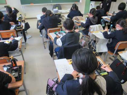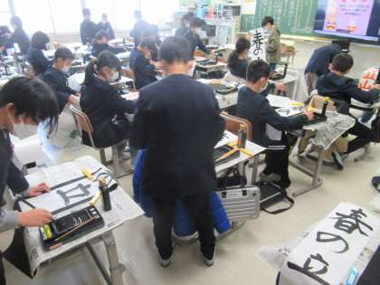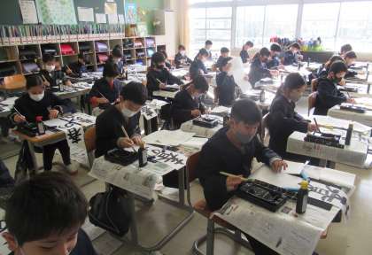 冬休み中の練習の成果を発揮しようと、真剣な態度で一生懸命書きました。