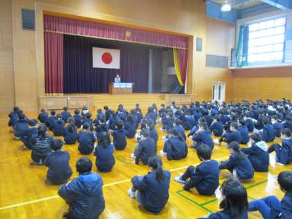 今日は第3学期初日です。子供たちの元挨拶挨拶があちこちで聞こえてきました。始業式では、6年生にとっては「最後の学期」ということや「卒業」ということを意識しながら、一人一人が静かに話を聞き、思いを高めているようでした。