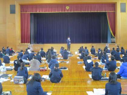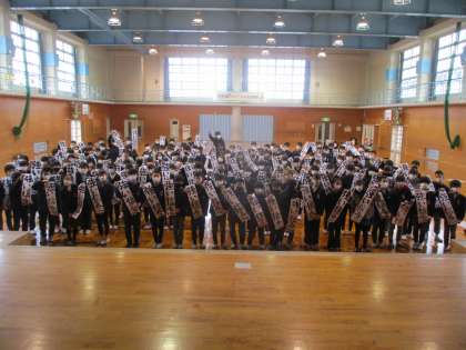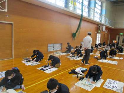 始業式後に書き初めを行いました。冬休み中にがんばった成果を発揮しようと一生懸命に書きました。最後は記念に写真をパチリ!