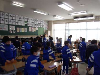 3学期は席替えをするクラスが見られました。ハンガーラックに上着がきちんとかかっていて、見ていて気持ちよくなりました。