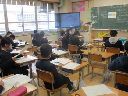 算数の学習では、前の単元に学習した割合を生かして円グラフや帯グラフの書き方を学習しています。学級の仲間と割合を計算しながら、円グラフや帯グラフを書きました。