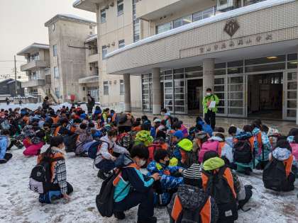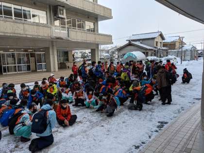 今日は朝からよく晴れています。出発式の様子です。それでは、行ってきます。