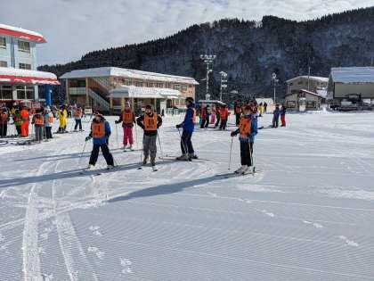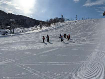 よく晴れた今日は、本当にスキー日和です。早速、滑る班もあります。