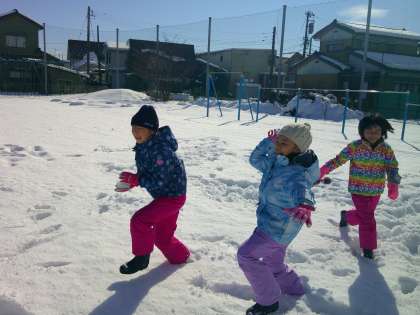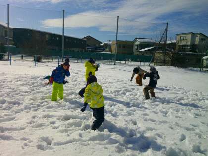 雪合戦、トンネルづくり等を楽しむ子供たち。「もっと、遊びたいな」「すごく疲れたけど、また遊びたいね」と口々に話をしていました。