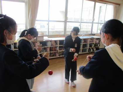 休み時間には、友達と楽しみながらけん玉やなわ跳びを行っています。