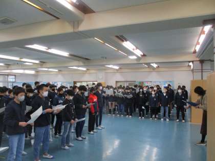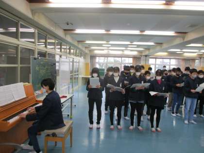 明日の感謝の集いを控え、卒業が一層近付いてきました。今日は学年で練習をしました。最初の発声を大きくすることに重点を置いて歌いました。