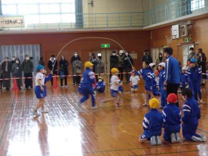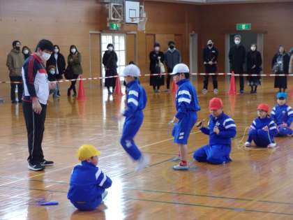 前跳びや二重跳びのリレー、どれだけ長く跳んでいられるか競う種目、8の字跳びなどを行い、各クラスの合計ポイントで競いました。また自分たちで大会の司会や競技説明を行いました。これからも、いろいろなことにチャレンジしていきます。
