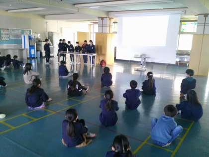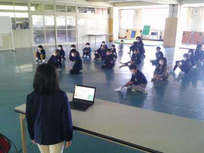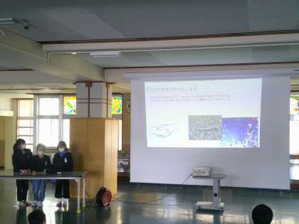 スライドを活用し、クイズ形式にすることで2年生も楽しみながら発表を聞くことができました。
