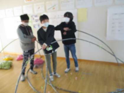 卒業お祝いプロジェクトが、本格的に始動しています。集会で使うアーチをつくったりアンケート結果を集計したりするなど、できることを考えて活動しています。