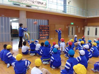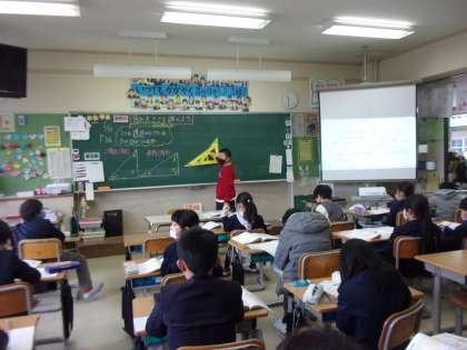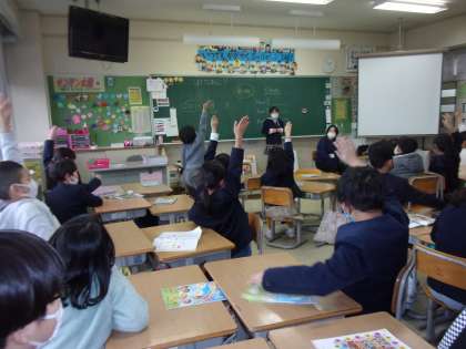 体育では、ポートボールをしています。パスやドリブルを練習しました。算数では、三角定規を使って、角の大きさを調べました。外国語では3つのヒントで考えるクイズを楽しみました。寒さに負けず、元気いっぱいの子供たちでした。