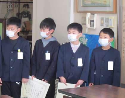 野球やバドミントン等、スポーツで活躍した子供たちが表彰されました。1年生も上学年と一緒に協力しながら頑張っています。