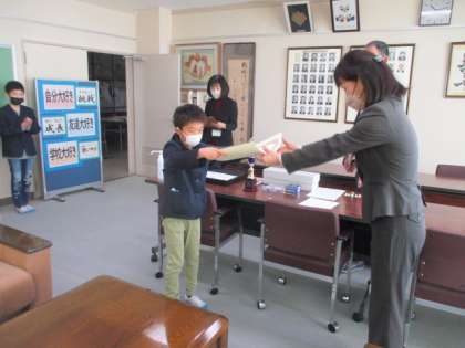 名前を呼ばれると元気よく返事をしたり、校長先生からしっかりと賞状を受け取ったりする姿が、立派でした。