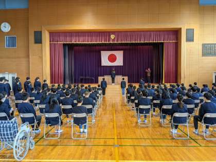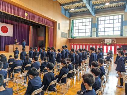 明日の卒業式を前に、今日は修了式を行いました。各クラスから、クラス全員分を代表して4人が修了証を受け取りました。子供たちは、6年間の成長を実感しながら、最後まで集中して式に臨みました。