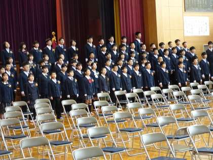 最後は子供たちが卒業式で歌いたいと決めた「始まりの唄」を合唱しました。体育館に歌声が響き渡ると同時に、担任たちも含め、体育館の中にいた人たちの心にしっかりと響きました。