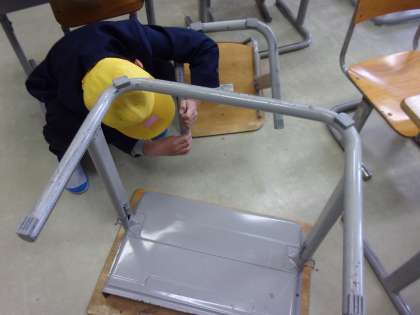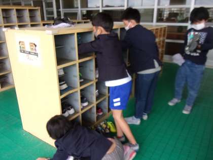1年間使った机や椅子、下足箱の掃除をしました。ぞうきんの汚れに驚いていました。「来年度使う子のために、綺麗にしないといけないね」と、心をこめて磨く子供たちでした。