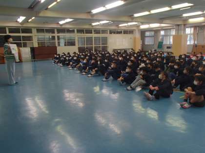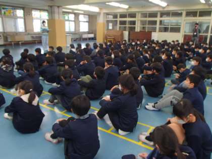 6時間目に、最後の学年集会を行いました。1年間を振り返り、高学年へ向けて、一人一人がやる気を高めました。