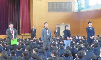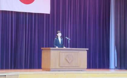 着任式・始業式を行いました。高学年としての自覚をもち、真剣な態度で式に臨みました。
