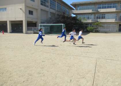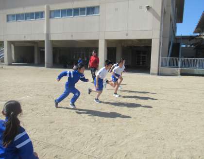 青空の下、50m走を実施しました。自分のベストを尽くし、全力で走りました。