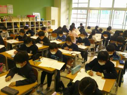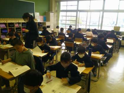今日は国語と理科の学力調査を行いました。子供たちは、3年生で習ったことを思い出しながら、最後まであきらめず集中して取り組みました。