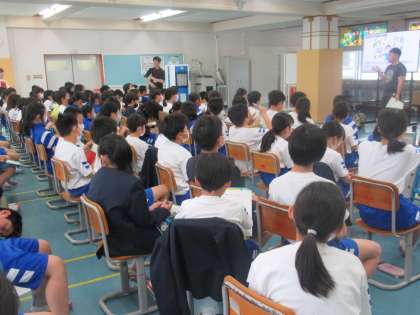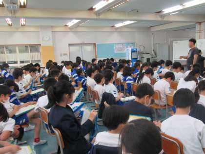 総合的な学習の時間について、学年集会を行いました。今年度、5年生は、「共につくる〜鵜坂の伝統と歴史〜」というテーマで、学習を進めていきます。