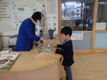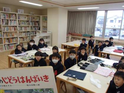 初めて図書室に行きました。読み聞かせをしていただいたり、利用の仕方を教えていただいたりしました。その後、初めて本を借りました。その際には、本やバーコードの向きに気を付けながら、学校司書の先生に「お願いします」と言って借りていました。