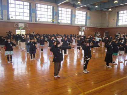 講師の方に踊り方を教えていただきながら、さんさい踊りの練習をしました。初めての練習でしたが、一生懸命真剣に取り組みました。