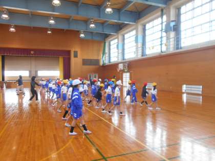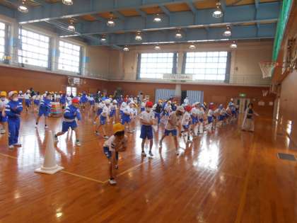 講師の方にさんさい踊りの振り付けを教えてもらいながら、真剣に踊る姿が見られました。