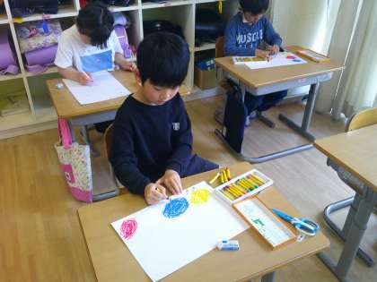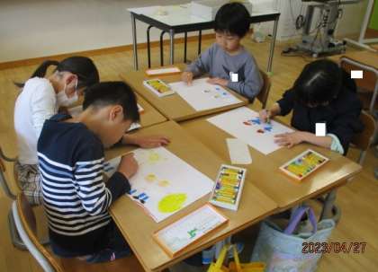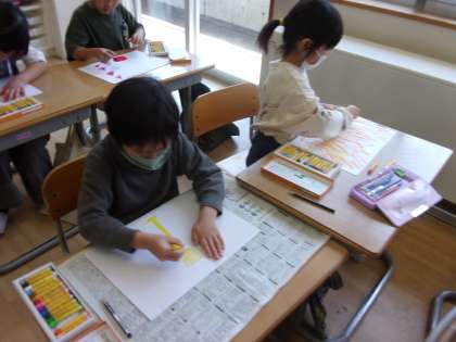 運動会に向けて、ポスターづくりをしました。運動会の様子を思い浮かべながら、絵を描きました。