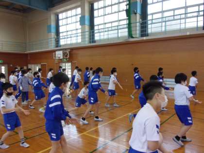 さんさい踊りの練習をしました。毎年、お世話になっている地域の方から学びました。久しぶりのさんさい踊りでしたが、音楽が流れると自然に体が動いていました。さんさい踊りの先生からも「さすが、6年生ですね」とお褒めの言葉をいただき、さらに美しく踊れるようにアドバイスをいただきました。