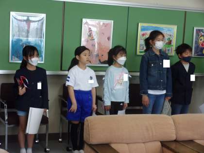 授賞式を行いました。バドミントン大会や空手道選手権大会の賞状やメダルを、立派な態度で受け取りました。