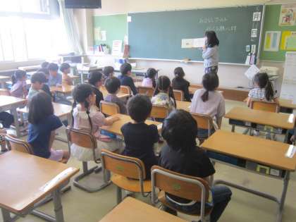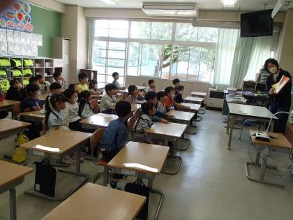 読書ボランティアの方に、初めて読み聞かせをしていただきました。子供たちは、絵本の世界に夢中になりながら、静かにお話を聴いていました。