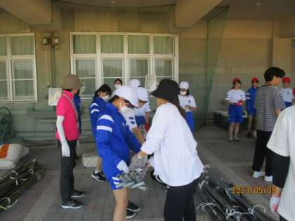 いよいよ明日は、運動会です。今日は、5・6年生で準備をしました。各係で打ち合わせをした後、グラウンドの準備をしました。あとは、みんなで競技や応援合戦、150周年セレモニーに全力で臨むだけです。