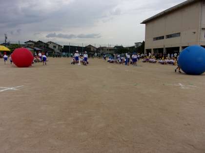 団体競技の大玉転がしでは、「150周年おめでとう」の声が高らかに響きました。